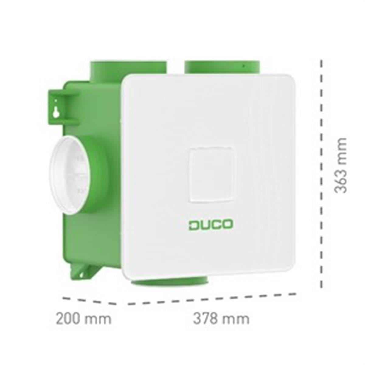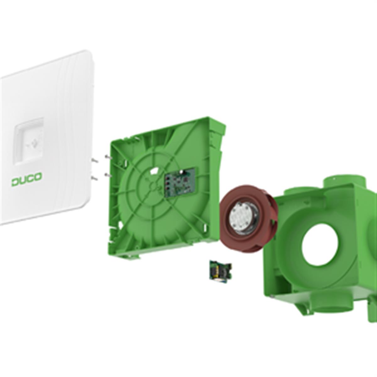 De DucoBox Reno is voorzien van een energiezuinige backward curved ventilator. Verder is er standaard een vochtmeting voorzien en kan de vraagsturing nog verfijnd worden met een snel te monteren “Plug & Play” CO2 Boxsensor. Zoals bij al onze oplossingen kan dit nog aangevuld worden met alle modulair toe te passen bedieningen en ruimtesensoren.