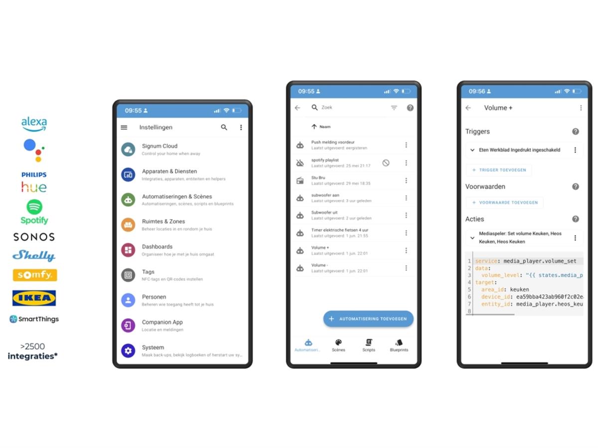 De Velbus Signum, in harmonie met Home Assistant, dient als het centrale knooppunt van uw slimme huis, waarmee u verbinding maakt met meer dan 2.500 slimme systemen via integraties. Integreer en beheer apparaten zoals verwarmingspompen (MELcloud, Daikin, Viessmann ViCare), oplaadstations voor EV's (wallbox, Smappee), audiosystemen (Sonos, Spotify, Bose SoundTouch, IKEA SYMFONISK), slimme verlichting (Philips Hue, IKEA TRÅDFRI) en slimme stekkers (Tuya, Shelly). Deze integraties worden ondersteund door een uitgebreide gemeenschap van Home Assistant-gebruikers, waardoor u regelmatig updates en nieuwe functionaliteiten ontvangt.