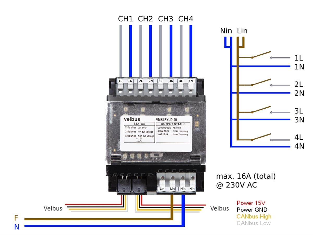 Maak kennis met de Velbus VMB4RYLD 4-Kanaals Relaismodule - het centrale brein van jouw slimme huisautomatiseringssysteem, ontworpen om moeiteloos verschillende apparaten te bedienen. Met zijn gebruiksvriendelijke bedrading en veelzijdige functies vereenvoudigt deze module de stroomregeling in jouw installatie.